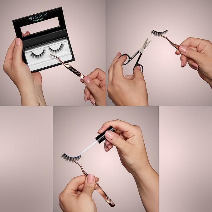 Using your Lash Applicator, gently remove the false lashes. Start with the outer eye and carefully pull inward until the lash is fully removed.