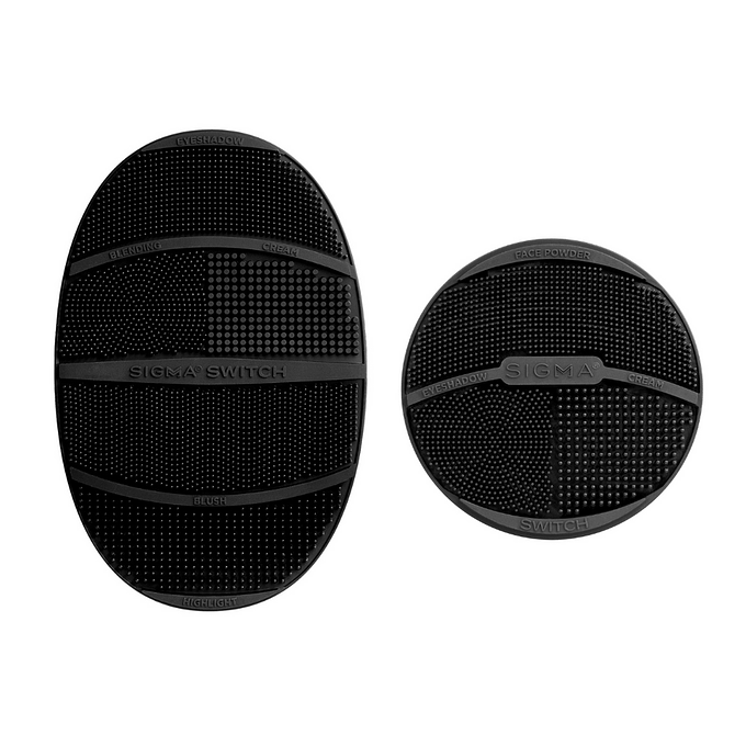 Switch shades without switching brushes at home or on the go with this limited-edition bundle, featuring our award-winning Sigma® Switch and the Sigma® Travel Switch. These innovative, double-sided mats feature soft silicone textures designed to gently pull liquid foundation, cream makeup or powder pigments from your makeup brush bristles without using water or instant brush cleansers. It's perfect for creating looks with multiple eyeshadow shades or makeup formulas. With these unique beauty tools in your kit, you'll never have to worry about having enough makeup brushes to complete the beautiful looks you desire.